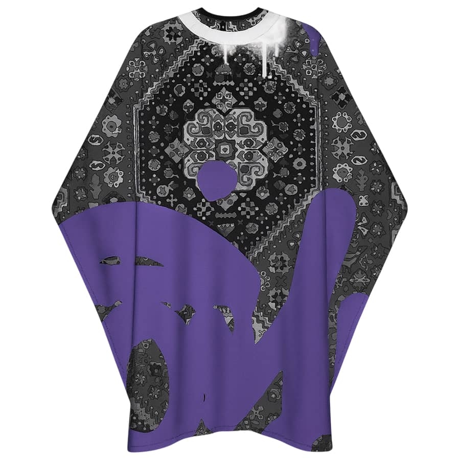 Profesionální barber pláštěnka MARMARA BARBER Fly Carpet Purple – voděodolná, antistatická a s elastickým límcem. Stylový design a maximální komfort pro zákazníky i barbery.