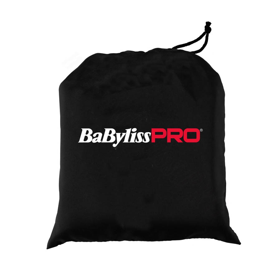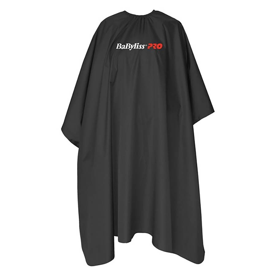 Profesionální kadeřnická pláštěnka na stříhání BABYLISS PRO v černé barvě s logem značky na přední straně. Pláštěnka má zapínání na druky a praktické poutko na zavěšení. Rozměry pláštěnky jsou 110 x 140 cm.