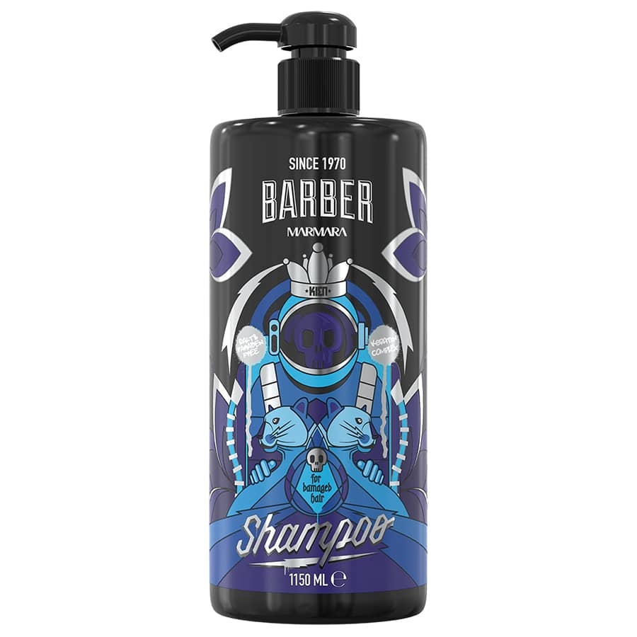 Profesionální šampon s keratinem MARMARA Barber vlasy od kořínků až ke konečkům čistí, vyživuje a pomáhá jim získat zdravý lesk. Díky obsaženému keratinu pomáhá obnovit strukturu vlasů a zajišťuje jim spolehlivou ochranu. Velké designově povedené balení (1150 ml) vhodné do barbershopů a kadeřnictví.