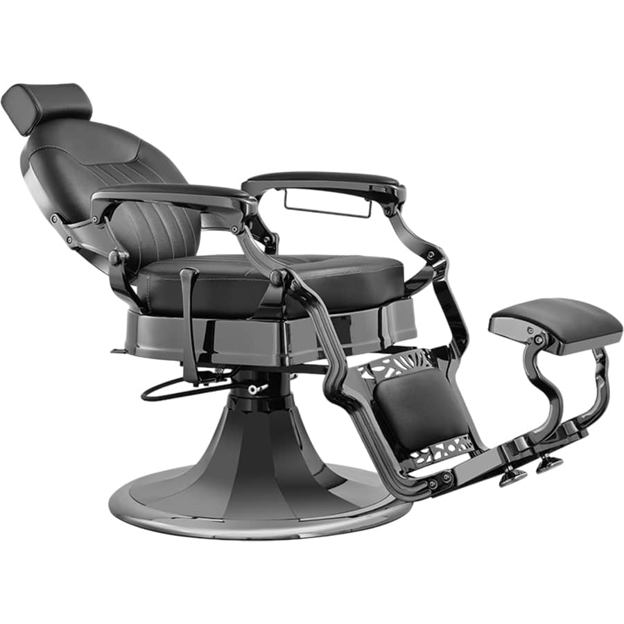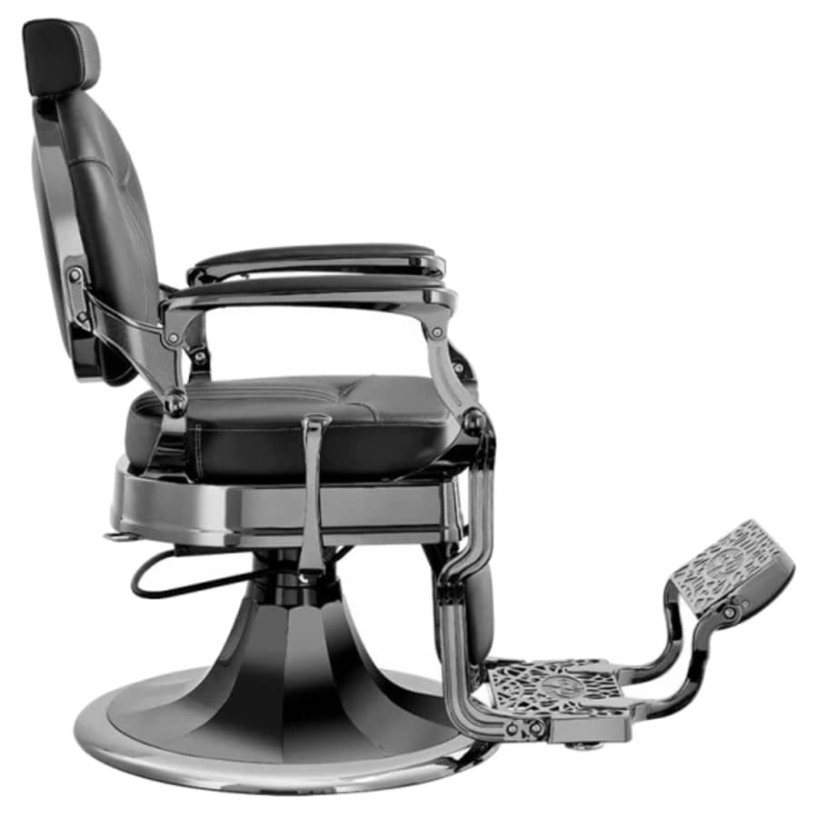 Luxusní barber křeslo CAESAR+ MERCURY kombinuje robustní kovovou konstrukci, pohodlný sedák s pěnou a pružinami, oboustrannou podnožku a nastavitelnou opěrku hlavy. Rtuťově-chromový design dodá vašemu barber shopu nezaměnitelný styl.