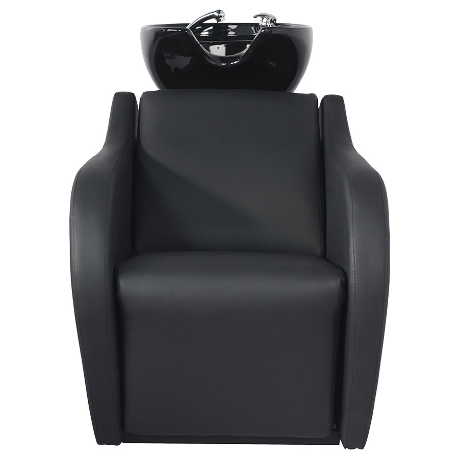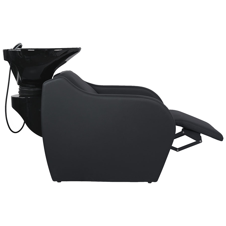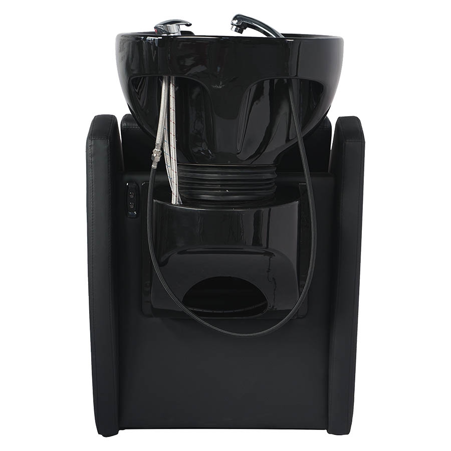 Luxusní mycí box WISP POWER Black s černým hlubokým keramickým umyvadlem, elektronicky nastavitelnou podnožkou a extra bederní výplní. Kombinuje maximální komfort klienta, ergonomii pro profesionála a odolnost pro každodenní provoz.